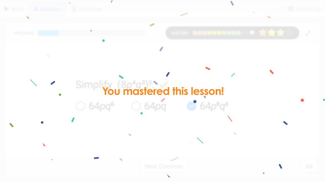 Mastery is measured as the HIGHEST DIFFICULTY level that a student achieves for that lesson. A 4-star mastery level means they have been able to answer the most difficult questions.