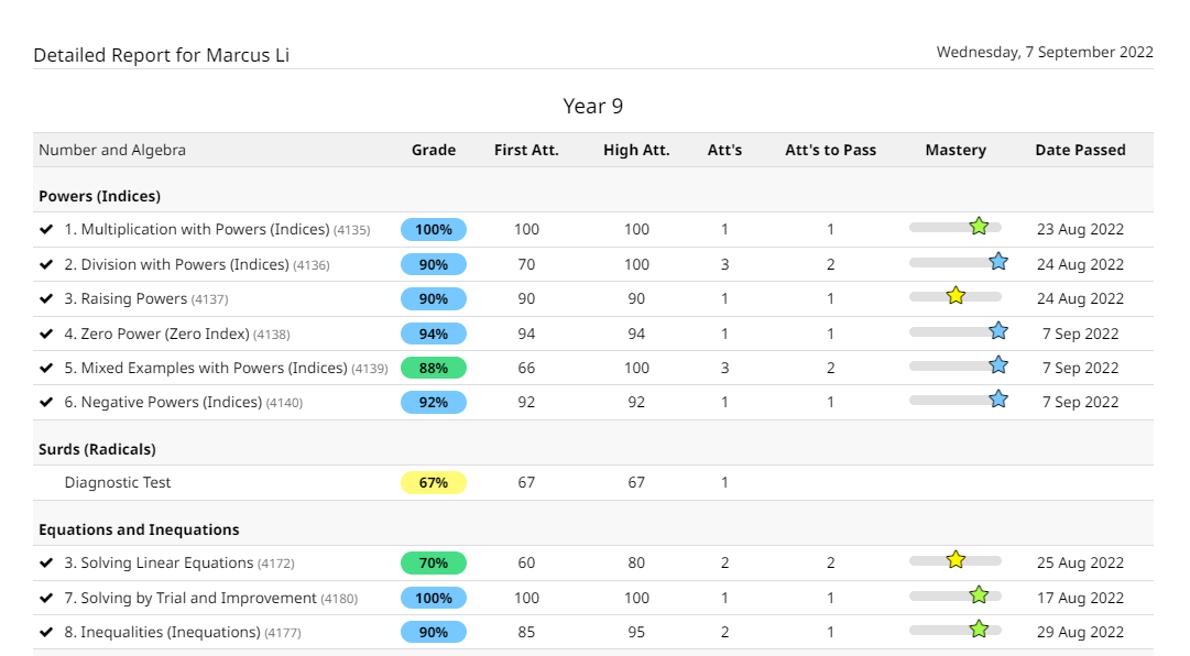 An even better measure of how well a student really understands the lesson. It encourages and rewards a student, who tries more questions to reach and succeed at the higher difficulty levels.